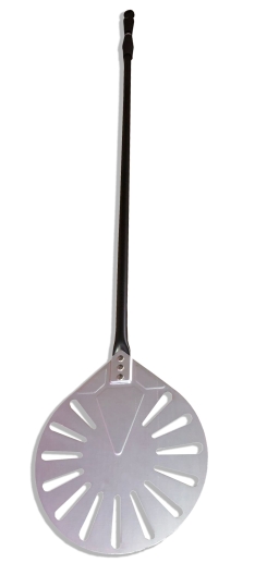 כף פיצה מסובבת עגולה חריצים 23 ס"מ אלומיניום אנודייז ידית אלומ' אורך כללי 142 ס"מ BMETAL