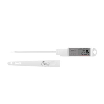 מד טמפרטורה ידידותי ,יהווה פתרון אידיאלי וחיסכון בזמן. • מד חום לבישול, מיועד למדידת טמפרטורת המזון. • מחט ארוכה וחדה ממתכת להחדרה לתוך המזון הנבדק – אל חלד • מתאים למדידת חום לבשר | לאפיה | לנוזלים מכל סוג. • מתאים למדידת מזון קפוא ועד סטייק על הגריל • טווח מדידה: מינוס 50- עד 300 מעלות. • מופעל באמצעות סוללת LR44 (כולל) • מידות: אורך 12 בס"מ ,רוחב 7 ס"מ • ניקוי פשוט קל ויעיל. • אחריות :שנתיים טווח טמפ’ – 50C-300C , סוללה : LR44, גודל : 4X130 מ"מ, גודל תצוגה : 15X29 מ"מ, אחריות לשנה