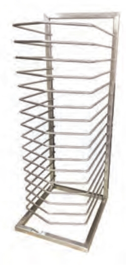 מעמד נירוסטה מחוזק H.D ל-16 מגשי פיצה 35-45 ס"מ מרחק בין מחזיק למחזיק 5.5 ס"מ גובה כללי 87 ס"מ