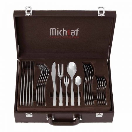 סט סכו"ם 60 חלקים דגם מאיה ארוז במזוודה קשיחה ל - 12 סועדים כולל: סכין, מזלג, כף, מזלג עוגה וכפית * 12 יחידות מכ"א.