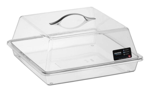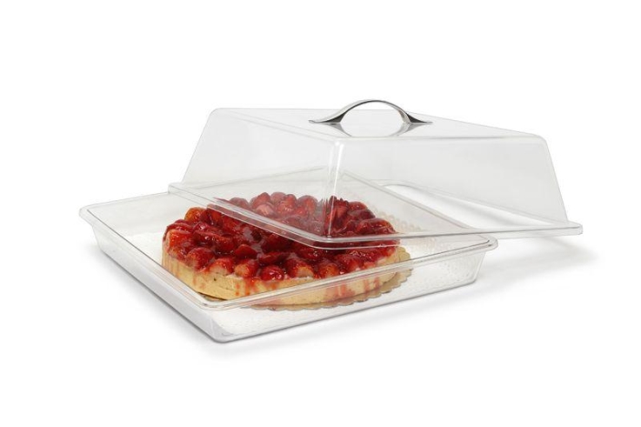 סט מגש+מכסה לעוגה/מאפים פוליקרבונט 33/27/15 ס"מ BORA