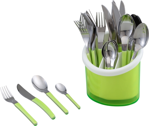 סט (24) סכו"ם צבעוני עם מעמד לימון