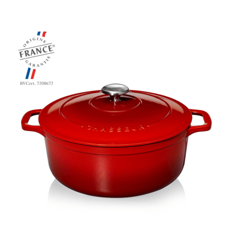 ברזל יצוק ציפוי אמייל כנגד קורוזיה.מכסה וכפתור נירוסטה מלא עם לוגו של Chasseur, תואם תנור עד 250 מעלות צלזיוס