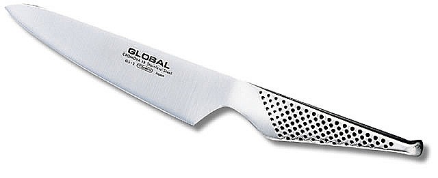 סכין עזר, 5 אינטש / 13 ס''מ סכין עזר קטנה וקצרה לשימוש כללי באורך 13 ס''מ, מסדרת GS הקלאסית של חברת GLOBAL. מאפשרת חיתוך, פריסה וקיצוץ פשוט ומדויק של מגוון סוגי ירקות. בעלת להב מפלדת אל-חלד, עמידה בפני חלודה, כתמים וקורוזיה.תוצרת יפן