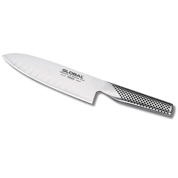 סכין שף G-84 באורך 16 ס"מ עם חריצים בצד הלהב שמונעים ממזון להידבק אליו. סדרת G היא הסדרה הקלאסית של גלובל, והיא מכילה סכינים חדות וקלות משקל בגדלים הנפוצים ביותר. סכיני שף הן סוסי העבודה של המטבח. הן משמשות למגוון רחב של פעולות חיתוך וקיצוץ במטבח, בעיקר של בשר וירקות. סכיני השף של גלובל נמצאות בראש הרשימה של סכיני השף בעולם, עם איכויות וסגולות יוצאי דופן בטיבם. פלדת האל - חלד ממנה עשויות סכיני גלובל קשה וחזקה יותר מזאת של הרוב המכריע של הסכינים האחרות. לכן, סכיני גלובל נשארות חדות לזמן רב יותר ודורשים פחות השחזה. סכיני גלובל גם הרבה יותר קלות מרוב רובן של הסכינים המקצועיות האחרות. הלהב דק וחד, והסכין שומרת על איזון מושלם בין הלהב לידית הנוחה. אין זה מפתיע, בהתחשב באיכותן יוצאת הדופן, שהסכינים המובחרות של גלובל מגובות באחריות לכל החיים ע"י גלובל. בסכין זו חריצים בלהב שמונעים ממזון להידבק לסכין ע"י השארת מרווח קטן לכניסת אוויר בין המזון לסכין.