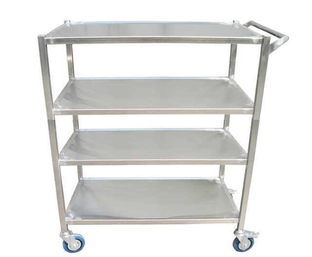 עגלה נירוסטה 4 קומות מדף 53/83 גובה 100 ס"מ ידית צד
